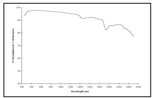 Spectraflect涂料:經(jīng)濟(jì)實(shí)用型,在可見(jiàn)光光譜內(nèi)具有很高的反射率。厚度在0.5mm以上時(shí),波長(zhǎng)400-1100nm之間,反射率超過(guò)99%。在360-830nm的光譜范圍內(nèi)提供97%的反射率,并且能擴(kuò)展至300-2400nm范圍。