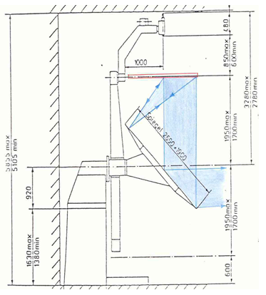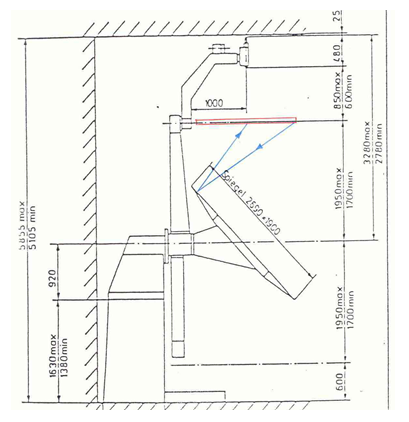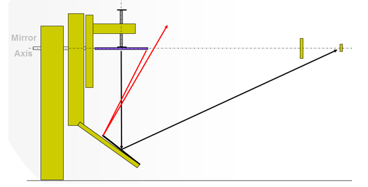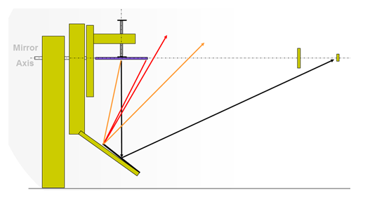 注:該圖表明,燈具左端發(fā)出的光通過鏡子最上端反射后,變成水平方向的光,送到遠(yuǎn)端探測器;同理,燈具最右端發(fā)出的光通過鏡子最下端反射后,變成水平方向的光,送到遠(yuǎn)端探測器。