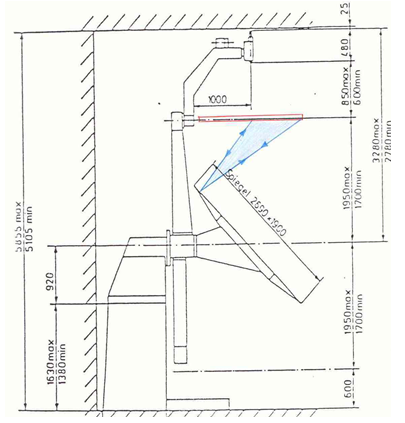 燈具最近端光線射向鏡子最近端后的反射光路圖