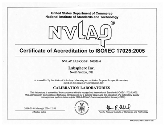 圖3、Labsphere獲得NVLAP認(rèn)證