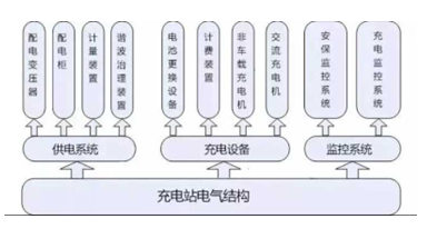 電動(dòng)汽車充電站主要由三部分構(gòu)成:供電系統(tǒng),充電設(shè)備和監(jiān)控系統(tǒng)。