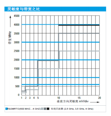 一般來講,當用示波器在低于10 mV/div 的檔位進行測量時,通常會通過限制測量帶寬的方法將噪聲盡可能地壓低。而 R&S RTO卻不同:它甚至可以在最敏感的小信號檔位提供全帶寬,并且用超過 7位有效位的 A/D 轉(zhuǎn)換器來進行信號量化。