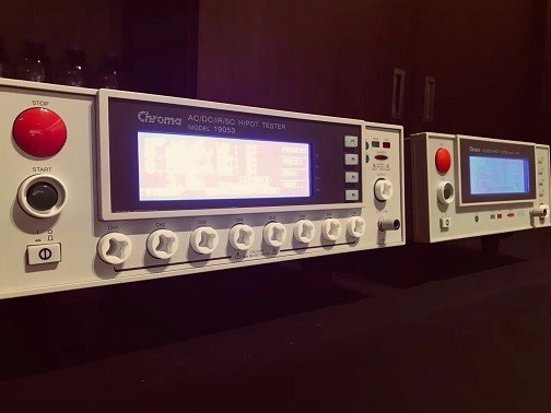 Chroma 66205數(shù)字功率計(jì)、Chroma 62004-150-60電子負(fù)載、Chroma 62015L-60-6和62010L-36-7可編程直流電源、Chroma 19073和Chroma 19053耐壓測(cè)試儀、Chroma 12061六位半數(shù)字萬(wàn)用表。