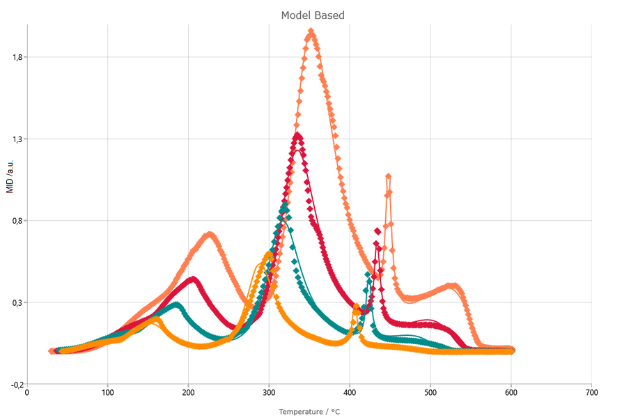模型動力學(xué):創(chuàng)建包含一至多個反應(yīng)步驟的反應(yīng)模型,每一反應(yīng)步驟具有獨(dú)立的反應(yīng)類型,擁有各自的活化能、指前因子等動力學(xué)參數(shù)。由此可見可對反應(yīng)過程及其內(nèi)在機(jī)制進(jìn)行更準(zhǔn)確的描述。