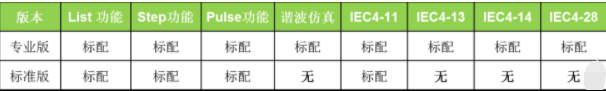 表2專業(yè)版和標準版可編程交流電源差異
