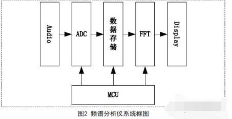 這篇文章介紹了一種基于FFT的的數(shù)字音頻頻譜分析儀的設(shè)計(jì)方案,通過(guò)ADC采樣輸入的音頻信號(hào),ADC采樣完成以后,將數(shù)據(jù)進(jìn)行倒序排列并進(jìn)行FFT運(yùn)算,最終結(jié)果通過(guò)TFT液晶顯示出來(lái)。系統(tǒng)的框圖如圖2所示。
