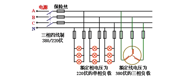 三相電源交流負載同時需要三相電源。將三相電源電動機、三相變壓器、單相負載連接到三相電源負載。