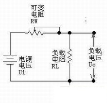 工作原理:先用下面的圖來(lái)說(shuō)明線性穩(wěn)壓電源調(diào)節(jié)電壓的原理。如下圖所示,可變電阻RW跟負(fù)載電阻RL組成一個(gè)分壓電路,輸出電壓為: