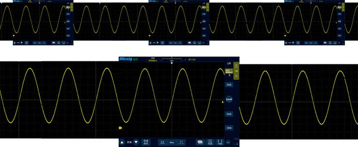 要了解數(shù)字示波器的觸發(fā),我們首先就要明白數(shù)字示波器的觸發(fā)有什么作用。我們一起來看當前數(shù)字示波器處于運行狀態(tài),數(shù)字示波器捕獲的是一個正弦波,它看起來似乎是禁止不動的,我們將畫面放大觀察,就可以發(fā)現(xiàn)其實波形是在不斷變化的,只不過這種變化很細微,我們?nèi)庋刍旧喜煊X不到,當我們暫停數(shù)字示波器,再放大觀察,就可以看到波形確實不再變化了。