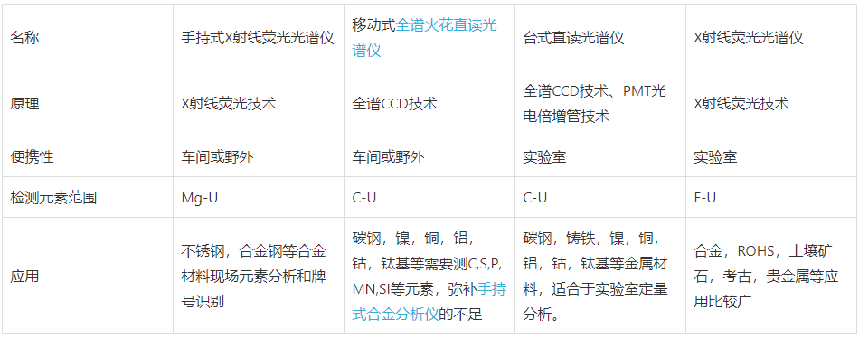 想詳細(xì)了解光譜分析儀可測什么元素嗎?考慮到光譜分析種類繁多,我們主要是要詳細(xì)了解金屬光譜分析儀的種類和類型:手持式X射線熒光光譜分析儀,移動式直讀光譜分析儀,臺式直讀光譜分析儀,X射線熒光光譜分析儀。