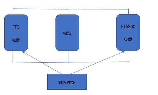 測試連接:電源和負載直接接入電池的正負極,使用一個觸發(fā)按鈕同步觸發(fā)。