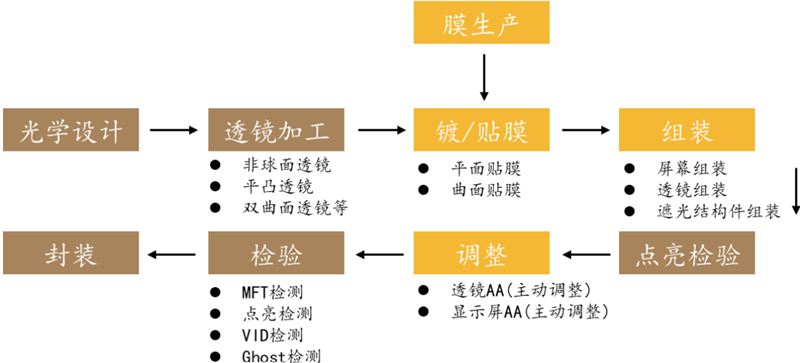 組裝調(diào)整:Pancake 光路精度高敏感,對位要求嚴(yán)苛。Pancake 折返方案包括兩片式和多片式,進(jìn)行屏幕、透鏡等組裝時需要嚴(yán)格按照既定光路設(shè)計完成,否則細(xì)微角度差異就會對最終成像效果產(chǎn)生很大影響,高精度 AA 設(shè)備在 Pancake 組裝過程中起到關(guān)鍵的效率和良率提升作用。