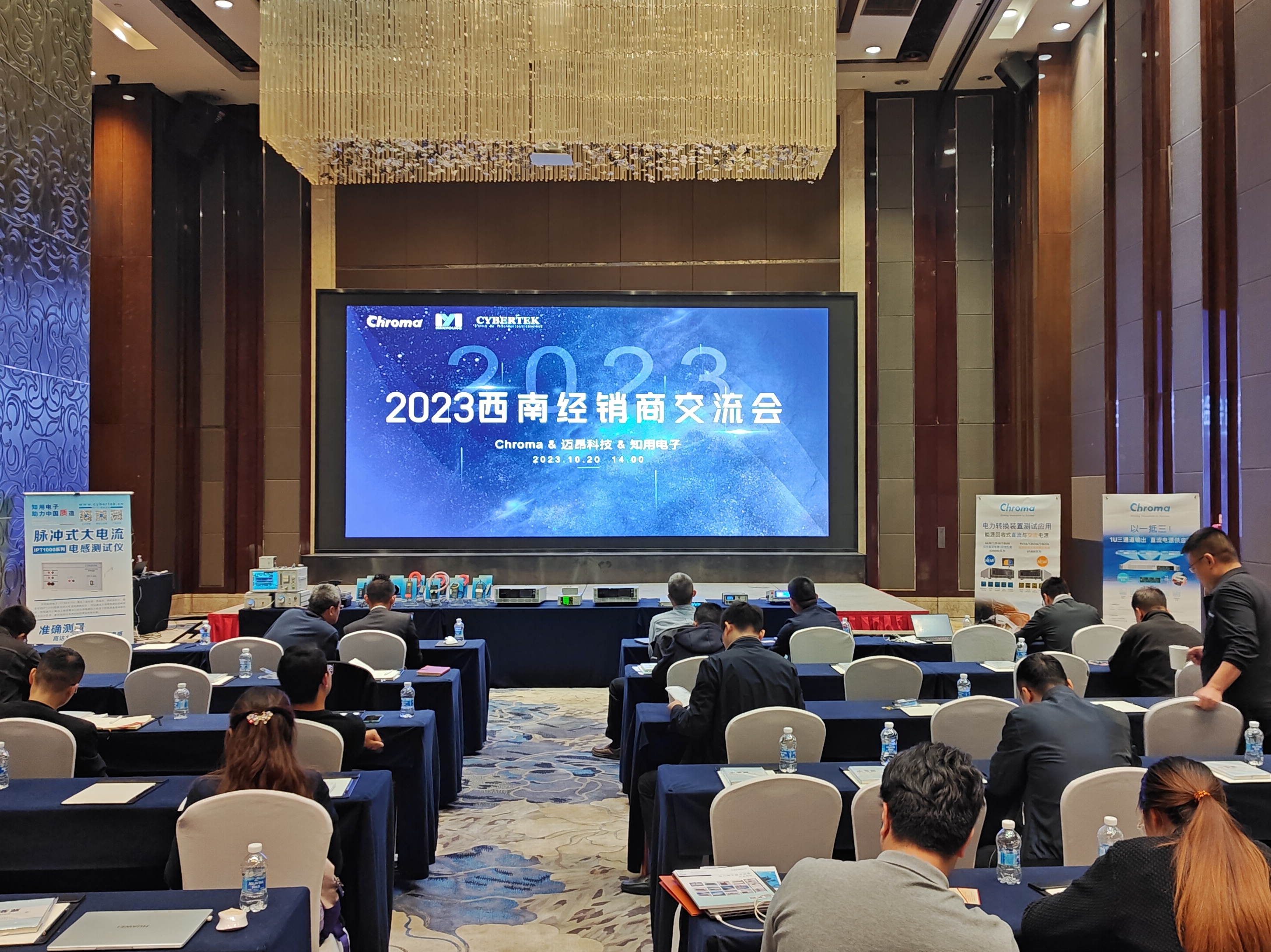 2023年10月20日下午,在成都東大明宇豪雅酒店成功舉辦了由Chroma、深圳市邁昂科技有限公司和深圳市知用電子有限公司聯(lián)合主辦的西南經(jīng)銷商交流會。Chroma大中華區(qū)域市場推進(jìn)中心總監(jiān)黃麟硯、Chroma量測儀器事業(yè)部總監(jiān)郭政翎、知用電子樊小明博士、邁昂科技總經(jīng)理程言攜公司下屬成員與與會經(jīng)銷商齊聚一堂,共同分享產(chǎn)品新機(jī)遇和發(fā)展新思路。
