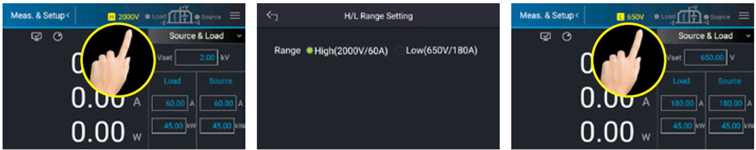 Chroma 62000D-HL型號所具備的雙輸出范圍,使用者只需于前面板觸控螢?zāi)簧弦绘I切換,或通過遠(yuǎn)端控制以一條指令即可完成切換。在產(chǎn)線自動測試系統(tǒng)(ATE)中,僅需使用一臺62000D-HL,以切換指令選擇High/Low檔位,即可滿足兩組輸出范圍操作。切換完成后可接續(xù)測試指令,使用者不需額外的人工手動于設(shè)備輸出端拆裝橋接治具,Chroma讓使用者可以連貫的執(zhí)行測試程序,同時避免人工手動安裝的危險性。