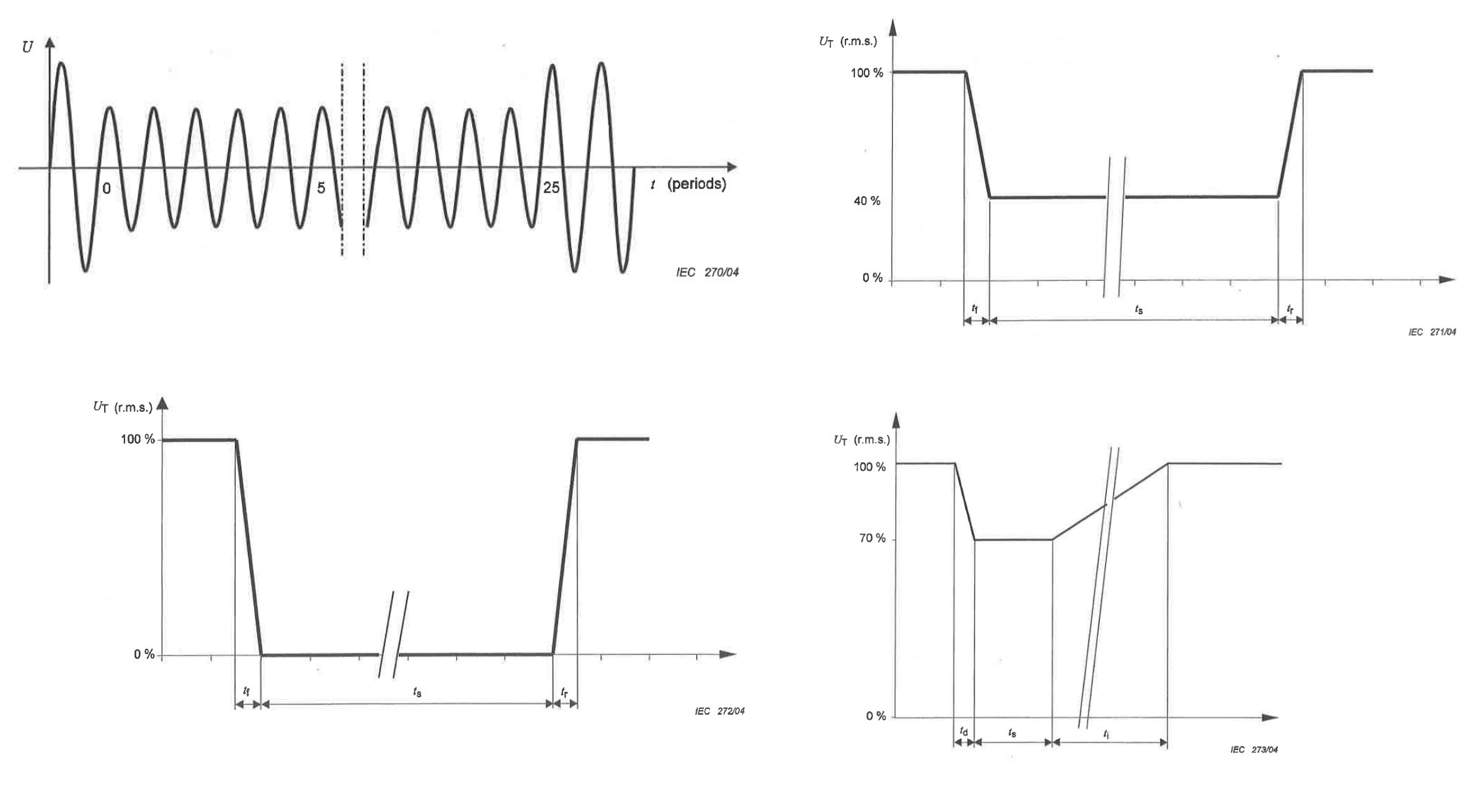 ▲ 圖四 可程控電網(wǎng)模擬器產(chǎn)生的各式波形示意圖