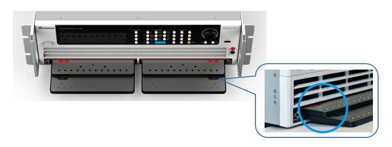 此外,Chroma 63202A-20-2000超低壓直流電子負(fù)載特殊的前銅排端子設(shè)計(jì),除了方便使用者接線外,左右兩邊銅排相通,并在正負(fù)銅排之間增加絕緣飾板以避免短路,還提供多孔鎖附點(diǎn)。此設(shè)計(jì)提供了低感量連接,對(duì)提升負(fù)載動(dòng)態(tài)載響應(yīng)速度有著顯著幫助,使電子負(fù)載在0.5V時(shí)電流斜率可以達(dá)到60A/us。另外Chroma提供選購(gòu)的負(fù)載連接線,特殊設(shè)計(jì)有超低的自感量,有效改善動(dòng)態(tài)電流測(cè)試產(chǎn)生的電壓降或電流過沖的問題。