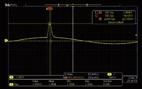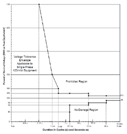 ITIC曲線描述了服務(wù)器電源在面對電壓異常(包括穩(wěn)態(tài)和瞬時條件)時的耐受能力。大多數(shù)ITIC測試條件(如黃色和綠色區(qū)域的測試點)對于測試設(shè)備來說相對容易達(dá)成,然而,紅色區(qū)域中的500%電壓突波測試是極具挑戰(zhàn)性的。Chroma 61800-100實現(xiàn)了峰值電壓過1.9kV (277Vacx5 x1.414) 并維持了200微秒。