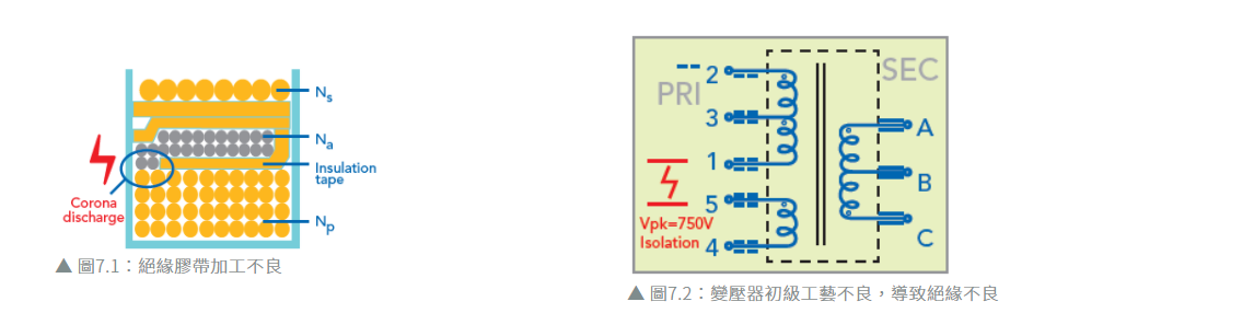 變壓器 :電源變壓器在常態(tài)電壓使用時,若產(chǎn)生一次側電暈放電,易導致鄰近組件損壞??墒褂?19055-C電暈放電檢測技術 (CDD) ,找出產(chǎn)品是否有電暈放電產(chǎn)出,改善產(chǎn)品質量。電暈放電偵測功能可用在線圈對線圈、線圈對地測試,避免因電暈放電導致繞線失效。