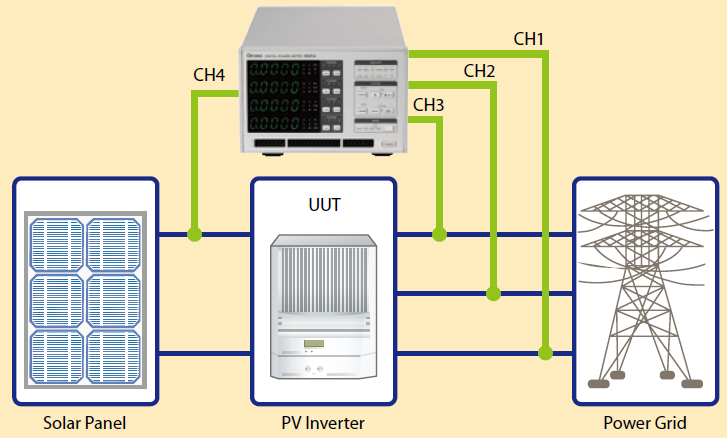 66203/66204的量測通道可分別進行獨立量測,因此適合應(yīng)用于待測物的多點量測。例如:可以使用66204的4通道分別量測太陽能逆變器的輸入及三相輸出交流參數(shù)值部份。另外,66203/66204也支援功率效能計算功能。使用者可以應(yīng)用此功能計算出待測物的整體效能,針對太陽能逆變器輸入端1000Vdc高壓量測部份可搭配HV功能及選配治具使用。