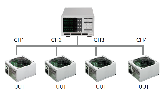 選擇1P2W單相兩線式最多可同時量測4個待測物(66204),每個模組最小電流量測檔位5mA,可符合空載功率(<30mW)量測以及能源之星(Energy Star)、IEC62301、EN50564對于功率量測要求。因此非常適合應(yīng)用于電腦伺服器、機上盒、電視、LED照明電源供應(yīng)器、電池充電器等產(chǎn)品測試。