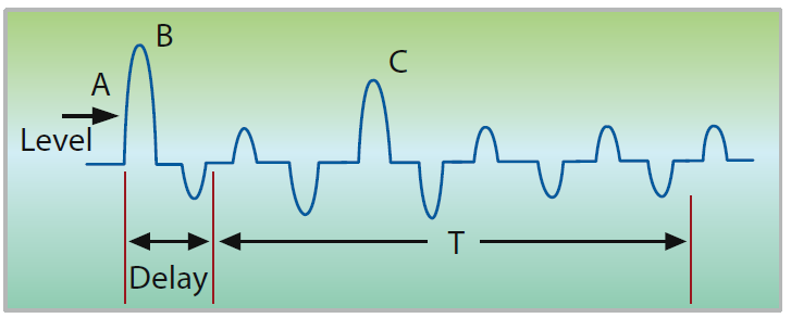 66203/66204數(shù)字功率表提供量測涌浪電流(Is)的功能,用戶可以設(shè)定一個電流準(zhǔn)位(A)來觸發(fā)開始量測電流,或使用后背板的TTL信號來進行觸發(fā);另外,可設(shè)定延遲參數(shù)(Delay),用來延遲真正擷取電流波形的時間,可幫助忽略掉剛開始不需要的波峰B;時間參數(shù)T,為實際擷取波形的時間長度。