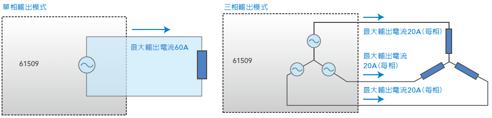 Chroma 61507/61508/61509提供選擇單相或三相輸出功能,使用者可以經(jīng)由前面板或遠(yuǎn)端控制選擇單相或三相輸出模式。即使設(shè)置在單相輸出模式,仍然可以提供功率輸出的能力,不需擔(dān)心輸出功率規(guī)格會(huì)有遞減的情形。