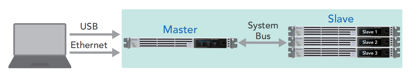 使用者需考慮具備體積小、重量輕、設備利用率高、可彈性拆裝組合為多套電源系統(tǒng)之彈性調度及系統(tǒng)故障維護時間所影響研發(fā)與生產等議題,62000E系列直流電源具有主/從控制模式,可并聯(lián)4臺最大功率達20kW,使并聯(lián)操作模式快速簡易方便于研發(fā)實驗室、驗證單位及生產線使用。在此模式中,主機將設定數(shù)值下載數(shù)據(jù)到從屬單機,此編程非常簡單且使用者操作方式相同于單機模式,并聯(lián)系統(tǒng)采用數(shù)位式均流設計具高穩(wěn)定性及抗噪聲干擾。