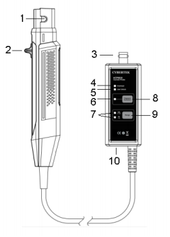 控制傳感器頭開合的操縱桿。測(cè)量電流時(shí)應(yīng)先拉操縱桿打開傳感器,放入被測(cè)導(dǎo)線。然后再推操縱桿使探頭處于 LOCK 狀態(tài)。
