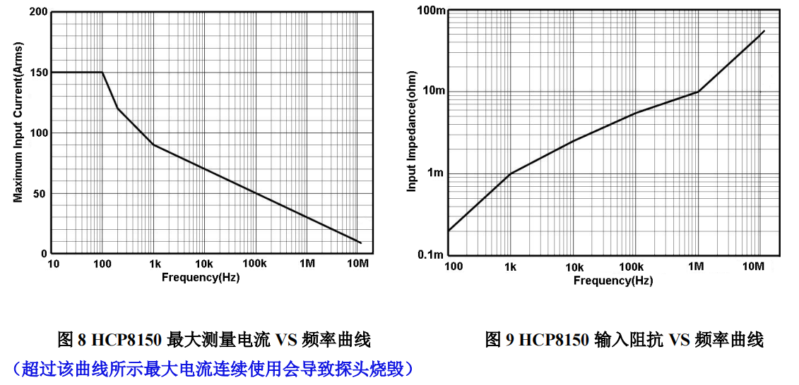 HCP8150 鉗口可夾住直徑達(dá) 20mm 的導(dǎo)線,適用于大電流應(yīng)用場(chǎng)合;可以測(cè)量 150A 的連續(xù)電流和 300A的峰值電流,提供了 12MHz 的帶寬;探頭具有 150A (100X)和 30A (10X)兩個(gè)量程可選擇,10X 量程用于小電流測(cè)量,分辨率高達(dá)10mA。