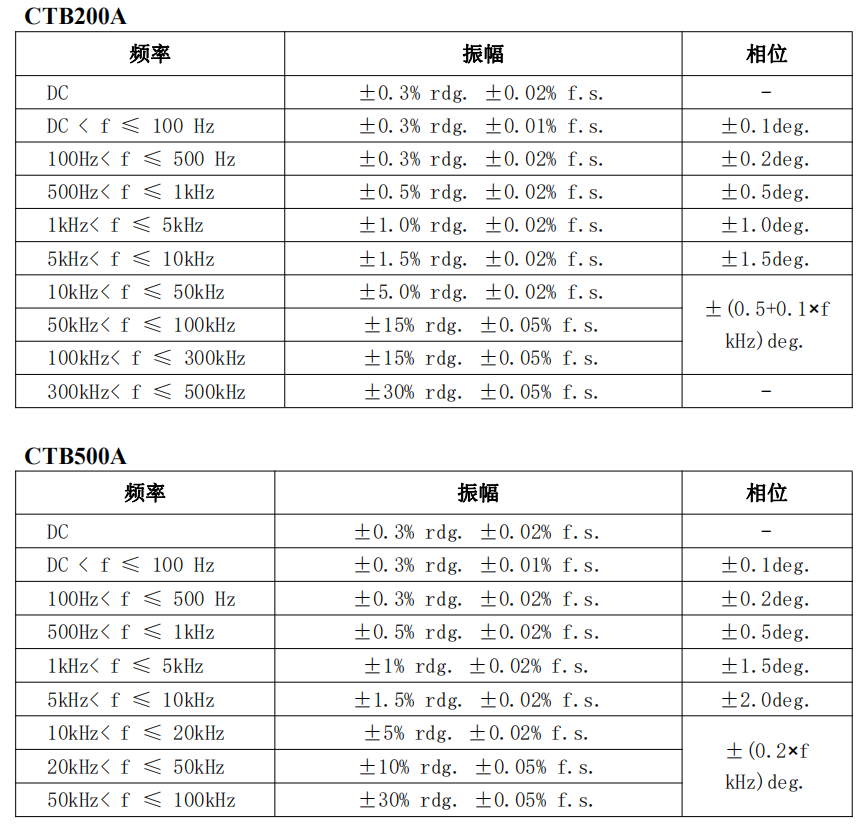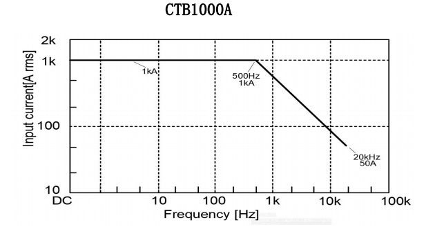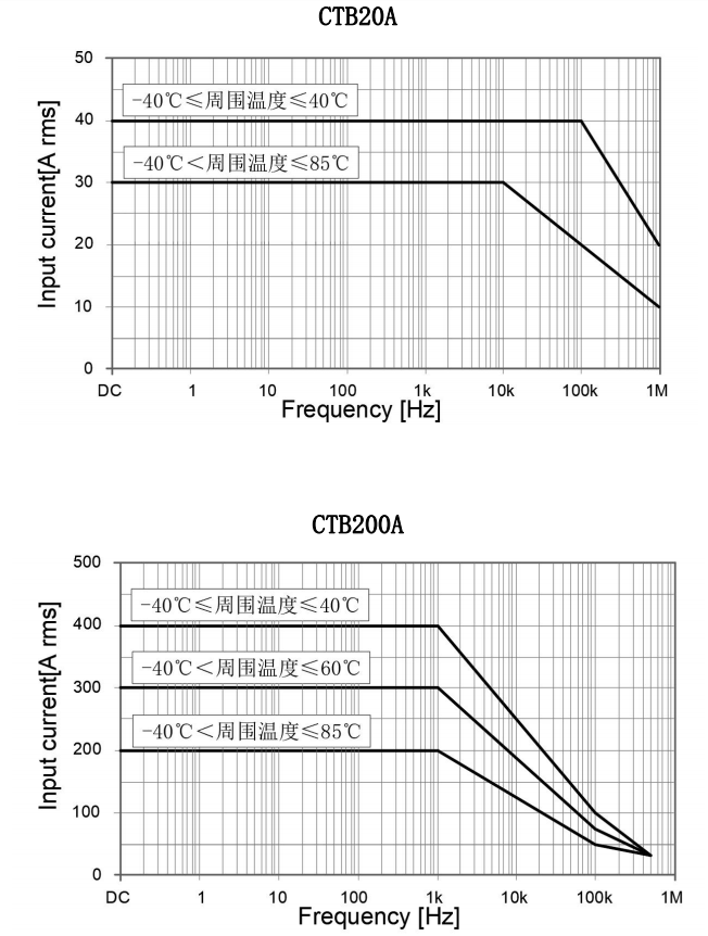 持續(xù)最大輸入范圍會(huì)因測(cè)定電流的頻率不同而不同。超過(guò)最大電流連續(xù)使用會(huì)導(dǎo)致探頭燒毀。