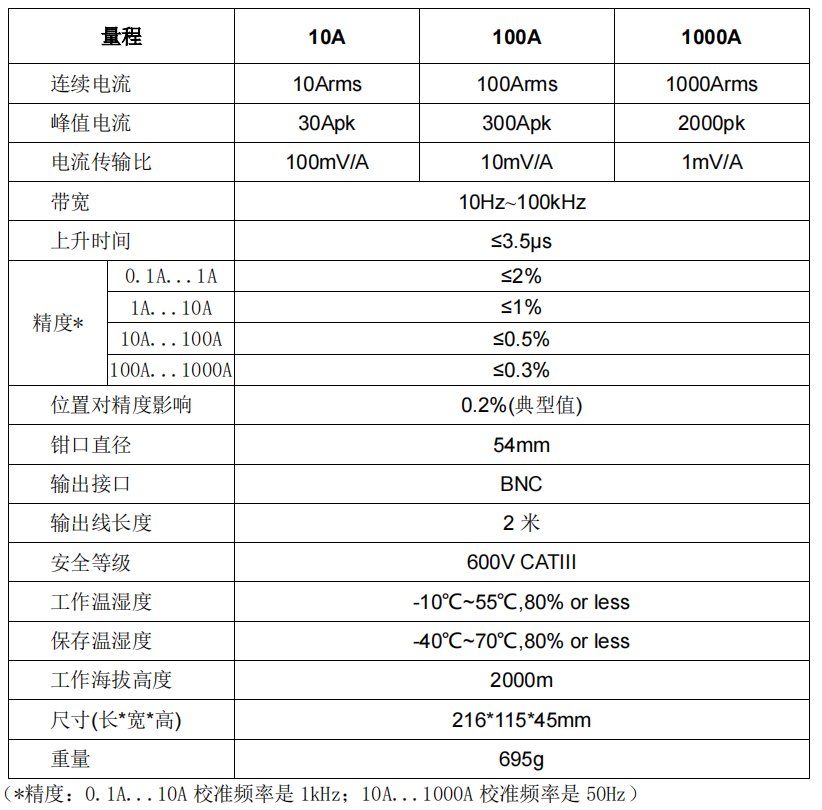 2. 量程選擇:提供 10A(100mV/A),100A(10mV/A),1000A(1mV/A) 3 個(gè)量程