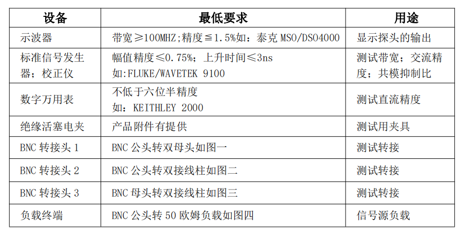 下面的測試步驟是為了驗證產(chǎn)品的電氣特性,測試設(shè)備要求如下: