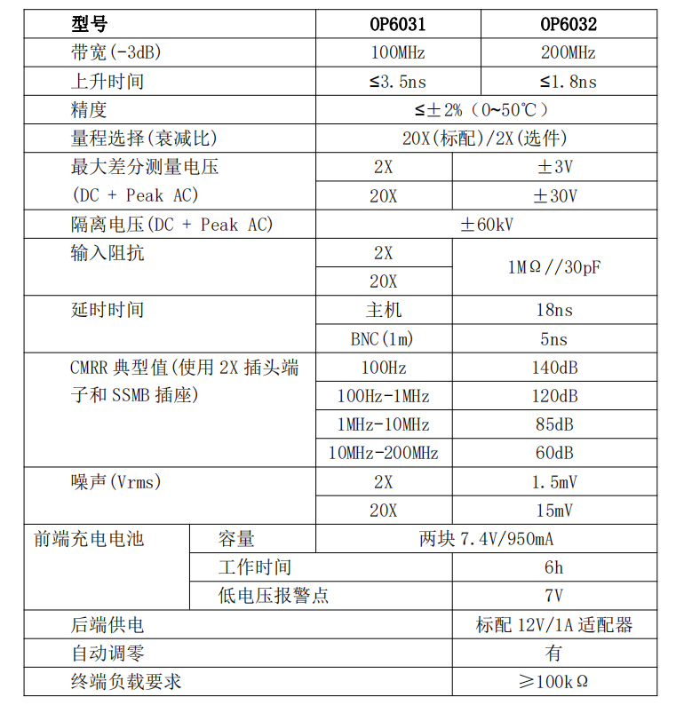 OP6031/OP6032 是超高共模抑制比的光纖隔離電壓探頭。傳統(tǒng)的差分探頭的共模抑制比在高頻段下降很快,導(dǎo)致準確測量高共模干擾電壓下的小電壓信號波形(比如測量半橋電路的上管的驅(qū)動電壓)極其困難。OP6031/OP6032 釆用了高性能的激光器光纖信號傳輸系統(tǒng),從而在整個工作帶寬內(nèi)具有超高的共模抑制比,可以幫助我們的客戶用很低的成本完成這類挑戰(zhàn)性的測量。
