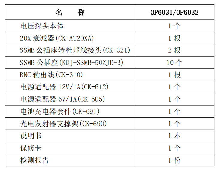 1 衰減器:衰減器連接到探頭端的是 USB 插頭,另外一端連接到被測電路的是 SSMB 射頻母插頭。衰減器有 20X 和 2X,分別對應(yīng)的測量范圍是±30V 和 3V,產(chǎn)品標配 20X 衰減器。用戶可以根據(jù)被測的信號大小選擇合適的衰減器。用戶需要自行設(shè)置示波器的衰減系數(shù)。