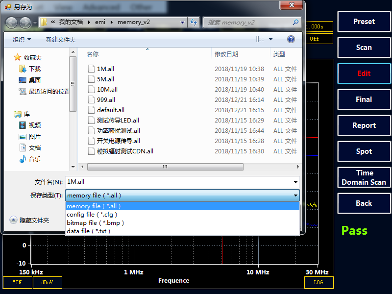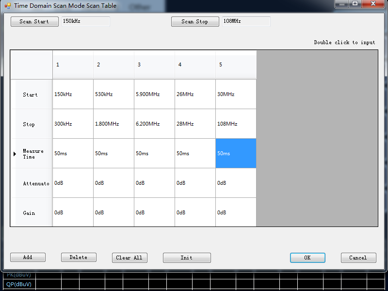設(shè)置“起始頻率”,“終止頻率”,“掃描模式下單點測量時間”,“終測模式下單點測量時間”以及“裕量”。(設(shè)置方法可參考表 4)