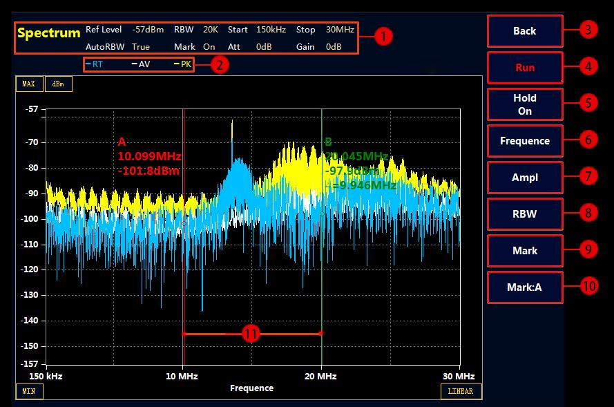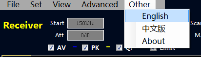 最大值保持掃描:點擊 Scan,會執(zhí)行連續(xù)掃描操作,并保持最大值顯示,通過 Stop 按鍵停止掃描。
