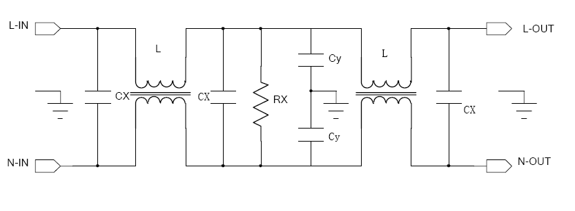 下圖是一個典型的二級 EMI 濾波器。
