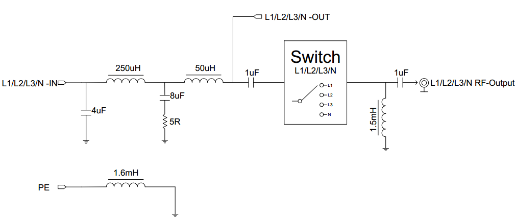 5 (轉(zhuǎn)換開關(guān)):分別將 N、L1、L2、L3 輸出信號切換到 RF OUTPUT 端口。