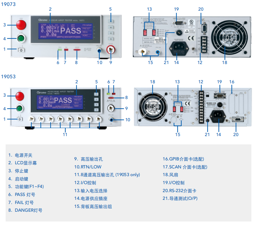 19050系列耐壓測(cè)試器有3個(gè)機(jī)種供選擇,19052ACV/DCV/IR耐壓測(cè)試器為單通道;19053ACV/DCV/IR耐壓測(cè)試器內(nèi)置8信道高壓掃描功能;19054 ACV/DCV/IR耐壓測(cè)試則內(nèi)置4信道高壓掃描功能。配有數(shù)位顯示面板與易于操作的界面,簡(jiǎn)單執(zhí)行耐壓與絕緣測(cè)試,為新型耐壓測(cè)試器。