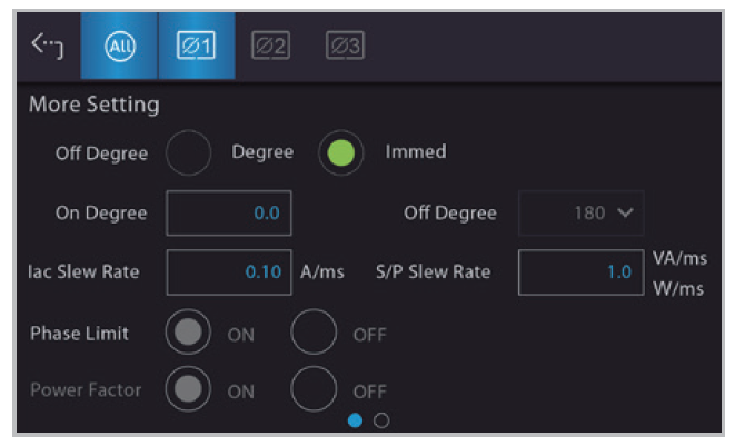 63800R系列能源回收式交流電子負(fù)載配備觸控式操作螢?zāi)?,提供直觀的UI介面讓用戶快速進(jìn)行多項(xiàng)設(shè)定和操作。交流負(fù)載的進(jìn)階功能如拉載/卸載角度、拉載電流Slew Rate等設(shè)定,皆隱藏于右上角More Setting功能,使主設(shè)定畫面簡(jiǎn)潔干凈。而透過(guò)全屏模式,可將所有量測(cè)值擴(kuò)展至全屏,適用于完成輸入設(shè)定后的觀察環(huán)節(jié),提供用戶更清楚的量測(cè)參數(shù)畫面。