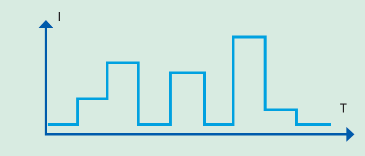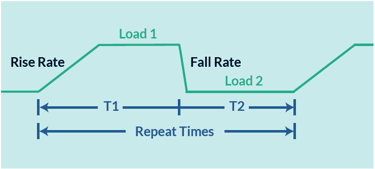 63700系列提供可編程動態(tài)負載(動態(tài)電流負載CCD)模式,右圖所示為可編程的參數(shù):設(shè)定電流高/低準位、T1/T2、爬升率/下降率與執(zhí)行次數(shù)。除上述基本參數(shù)可設(shè)定外,還可讓使用者設(shè)定一段時間的重覆次數(shù),范圍為1 ~ 65535。