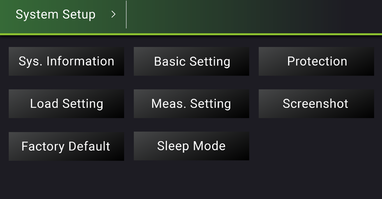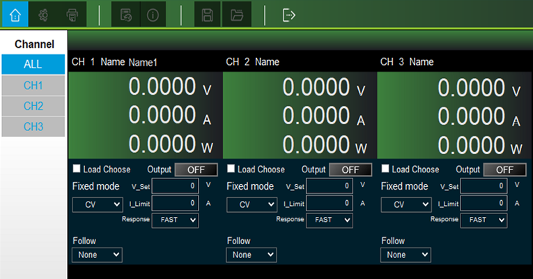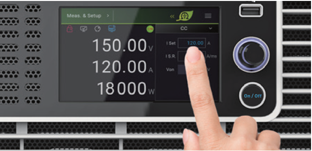 手動操作部分,采用5吋的彩色觸控螢?zāi)?,可同時顯示量測值與設(shè)定值,友善的人機接口讓用戶有更直覺的操作體驗,除觸控螢?zāi)煌?,也保留實體旋鈕與負載開關(guān)按鍵,可精準快速的進行微調(diào)設(shè)定。